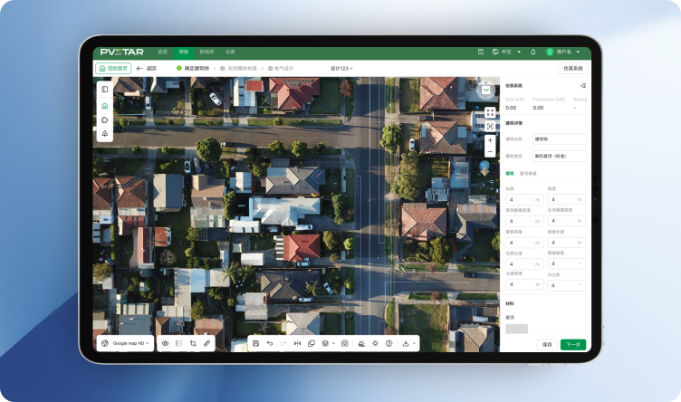 AI驱动的户用光伏智能设计工具支持阳光房、平改坡、斜/平屋面、庭院等多场景定制方案。